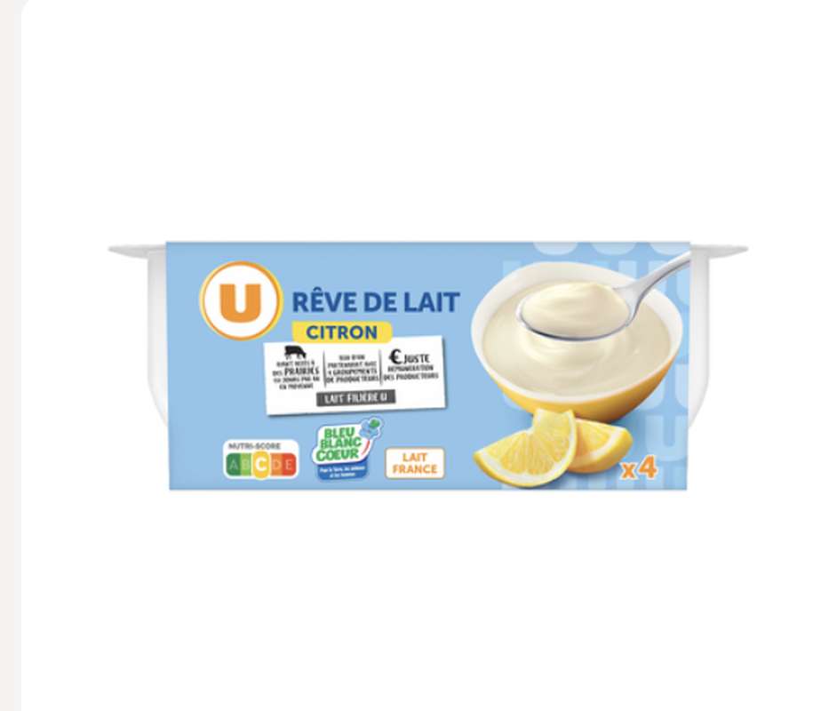 Lait entier 71%, crème, sucre 7,4%, purée de citron 3,7%, amidon de maïs, amidon transformé de maïs, poudre de lait écrémé, arômes naturels, jus concentré de citron, denrée alimentaire colorante : concentré de carthame, ferments (dont lait).