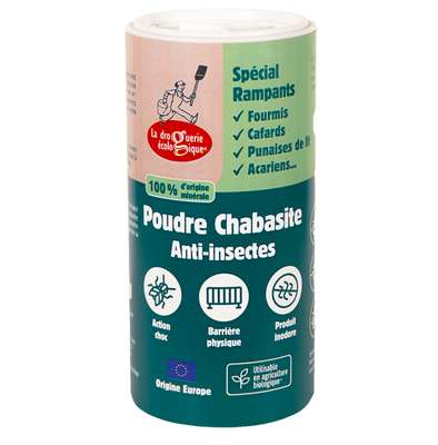 La poudre de chabasite, un allié 100% naturel pour protéger votre maison, efficace contre les insectes et respectueuse de votre santé et de l'environnement. Elle agit mécaniquement contre les insectes rampants (fourmis, cafards, punaises de lit, acariens...) en absorbant l'humidité de leur cuticule. Elle est sans produits chimiques, sans danger pour l'homme et les animaux domestiques (dans le respect des précautions d'usage). Idéale pour la maison, les abris de jardin, les terrasses ou les locaux agricoles, elle reste active tant qu'elle est sèche. Grâce à son tube poudreur, elle est facile à utiliser et à doser.