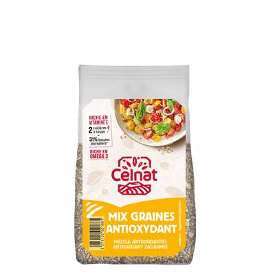 Ce mélange regroupe à la fois des graines oléagineuses (courge, lin brun, sésame blond complet), du soja concassé précuit et du boulgour d’avoine garantissant ainsi des apports nutritionnels complémentaires et bénéfiques.