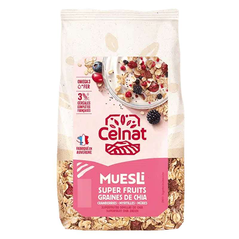 Les superfruits ont la particularité d’être concentrés en phyto-nutriments spécifiques (ex. anthocyanidines de la canneberge et de la myrtille…). Dans cette recette, nous les avons associés à la graine de chia, super-graine oléagineuse s’il en est, particulièrement riche en fibres et acides gras essentiels oméga 3. Il est important d’avoir une alimentation variée, équilibrée et un mode de vie sain.