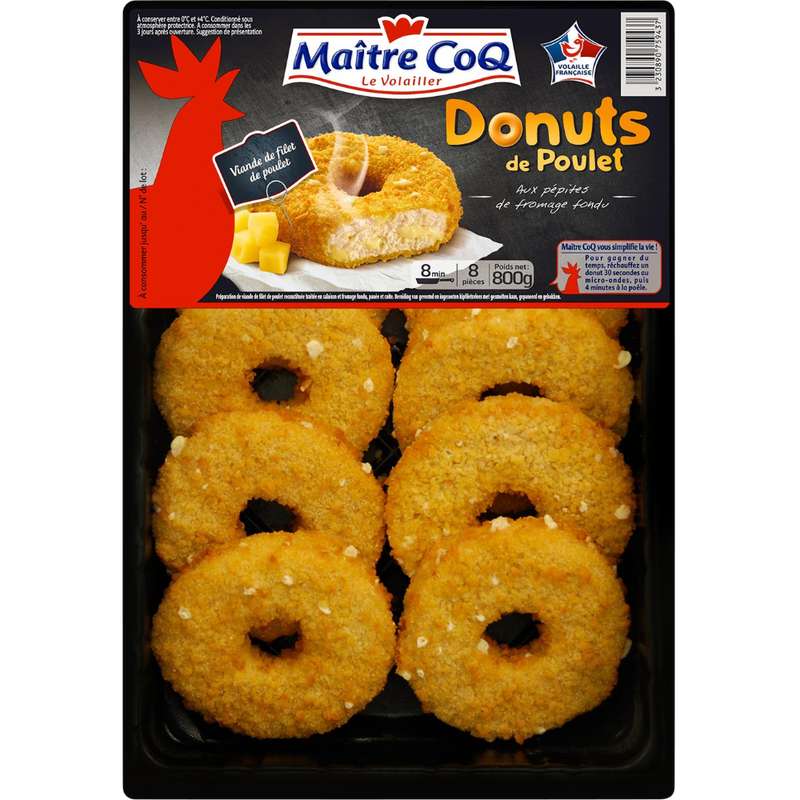 Préparation de filets de poulet origine France reconstitués traités en salaison et de fromage fondu, panée et cuite.