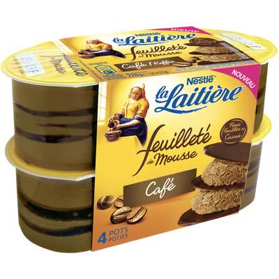 Ingrédients : Ingrédients : LAIT entier (63,3%), crème (LAIT), sucre, beurre de cacao, pâte de cacao, LAIT écrémé en poudre, extrait de café (1,5%), gélatine bovine, arômes, émulsifiant (E472b), épaississants (alginate de sodium), édulcorants (sucralose, acésulfame K), correcteur d'acidité (hydroxyde de sodium). Lait origine France.