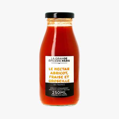 Un délicieux nectar de fruits produit en France, signé La Grande Épicerie Paris. Produit avec de la purée d'abricots de Haute-Ardèche, de la purée de fraises d'Alsace et du jus de groseilles des Hauts de France, il sera idéal pour débuter la journée. À consommer frais à tout moment de la journée, il fera aussi un bel apéritif sans alcool.