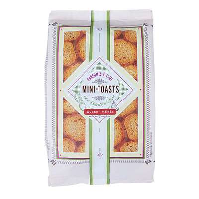 Les croûtons à l'ail et huile d'olive Albert Ménès sont élaborés à partir d'une fine sélection de farines de froment, seigle, maïs, riz, orge et avoine. La pâte est façonnée en longs pains qui, une fois cuits, sont tranchés puis délicatement grillés. Ces croûtons aux parfums méditerranéens d'ail et d'huile d'olive s'utilisent tant dans une soupe qu'en toast ou en alternative originale au pain.
