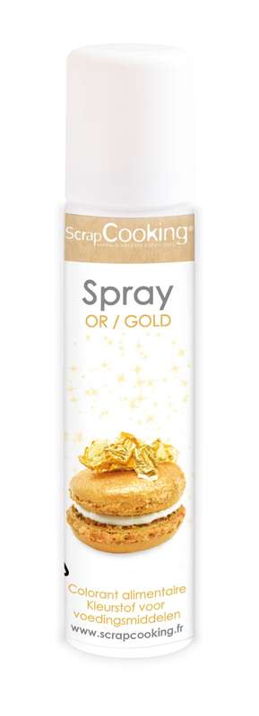 Colorant alimentaire OR en spray, convient parfaitement pour décorer les cupcakes, macarons et autres gâteaux.