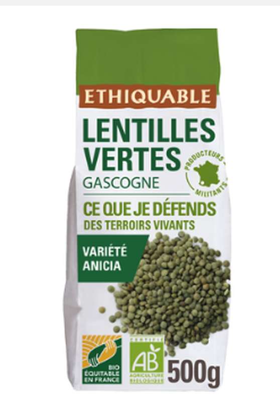 CE QUE JE MANGE : On ne présente plus la variété Anicia ! Son léger goût de noisettes la prédispose tout particulièrement à des salades. Elle saura aussi se faire moins classiques, en tartinade par exemple. En fonction de la récolte, ces lentilles vertes proviennent soit de la coopérative QUALISOL en Gascogne, soit de la coopérative COCEBI en Bourgogne.