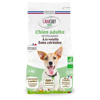 Volaille (30%), tourteau de soja, pois, fécule de pomme de terre, huile de saumon, facteur d’appétence, graisse de volaille, fibres végétales, lin extrudé, thé vert, herbes aromatiques, pulpe de chicorée, cranberry, carottes, tomates, myrtilles, aloe vera.