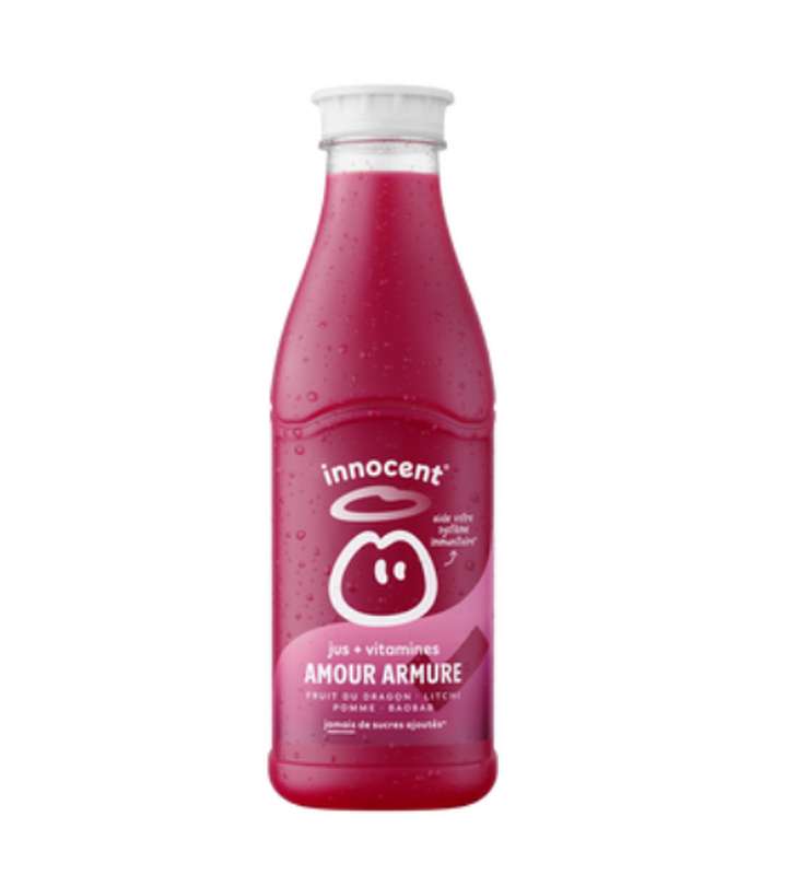Ce jus innocent plus est composé de fruits, de légumes, de plantes et vitamines pour vous aider à vous sentir tip top et à profiter de la vie. Et d'ailleurs, dans la vie, tout est possible. Prenez ce jus rose amour armure. Vous saviez qu'il était possible de faire un jus de fruits vitaminé aussi rose qu'un flamant rose avec seulement des ingrédients naturels ? Il suffit de mettre du fruit du dragon rose avec du litchi, de la pomme, du baobab et des vitamines. Et en plus, c'est bon. C'est fou non ?