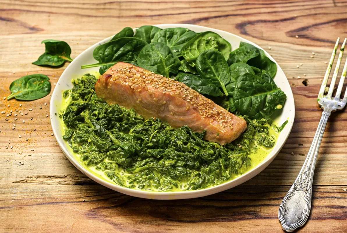 Un pavé de saumon mariné à chaud avec une sauce teriyaki, et cuit au four. Un crémeux d'épinard au curcuma et des pousses fraiches pour l'équilibre. Un plat sans féculent tout en couleurs et saveurs.