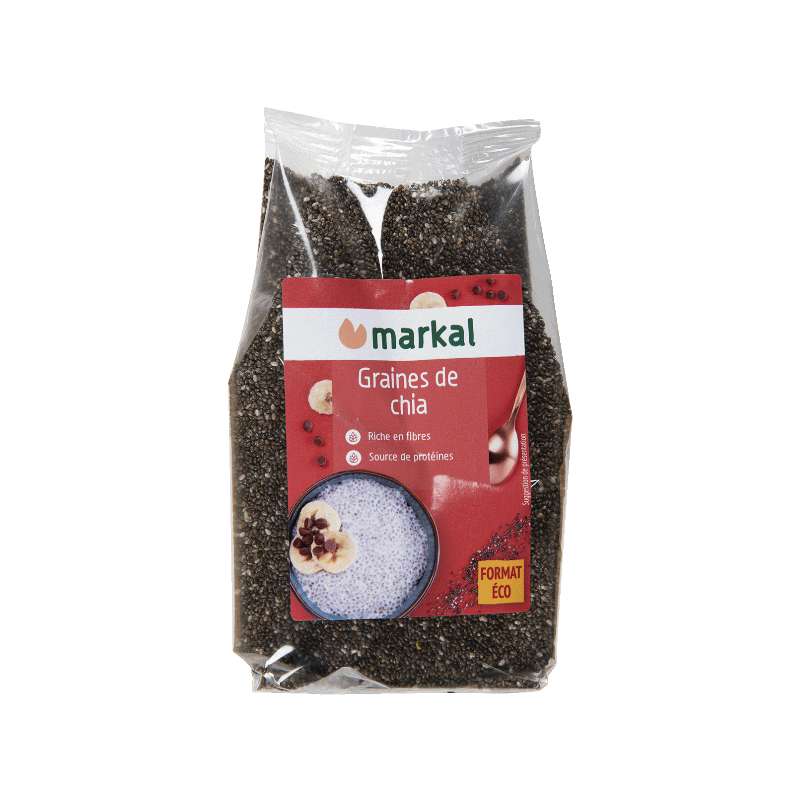 Les graines de chia sont de petites graines (2mm) ovales qui peuvent être de couleur grise ou noire. Elles sont une excellente source d'oméga 3 et de fibres.