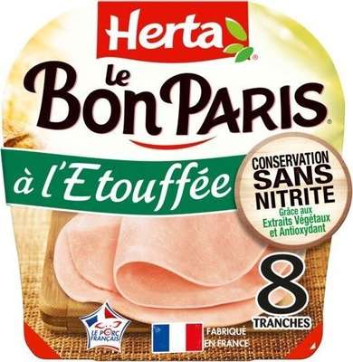 Découvrez la gamme LE BON PARIS Conservation Sans Nitrite : le premier* jambon du marché au mode de conservation sans nitrite, élaboré à partir d'ingrédients d'origine naturelle. Du jambon frais de porc rigoureusement sélectionné, du bouillon travaillé avec des arômes naturels, une pincée de sel, une touche de sucre... et c'est tout ! De belles tranches et une recette à l'Etouffée, qui plairont à toute la famille ! *1ère marque distribuée à l'échelle nationale