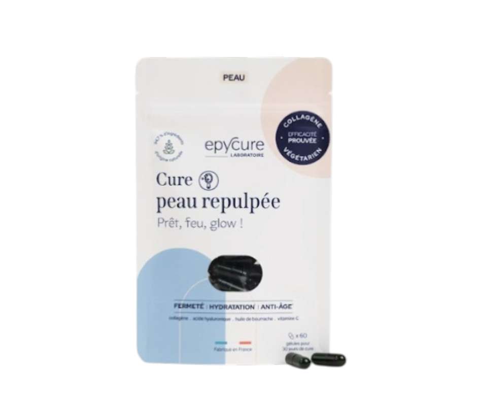 Après 25 ans, la production naturelle de collagène diminue, et la peau perd progressivement fermeté et tonicité. La Cure peau repulpée agit de l’intérieur pour compenser cette baisse grâce au complexe Reggenerate™, un actif innovant issu de la membrane de coquille d’oeuf, riche en collagène végétarien, élastine et acide hyaluronique. Jour après jour, elle aide la peau à retrouver hydratation et fermeté, pour un effet repulpé et un grain de peau plus uniforme. Une routine simple, efficace et respectueuse du bien-être animal, concentrée dans 2 gélules quotidiennes.