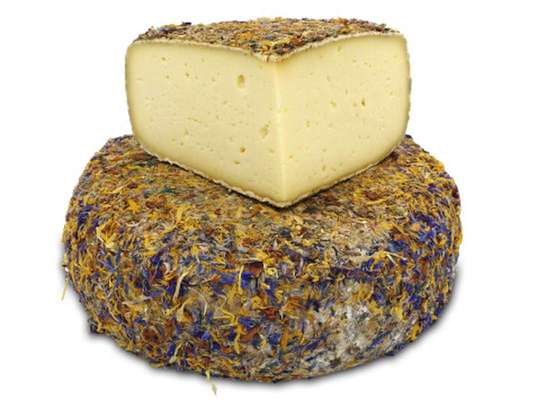 Production maison. Cette tomme au lait de vache de montagne est fabriquée au sein de notre atelier de Désaignes en Ardèche. Sous sa croûte enrobée de fleurs, sa pâte aérée d'une belle couleur blonde dégage des parfums de printemps et de bon lait frais.