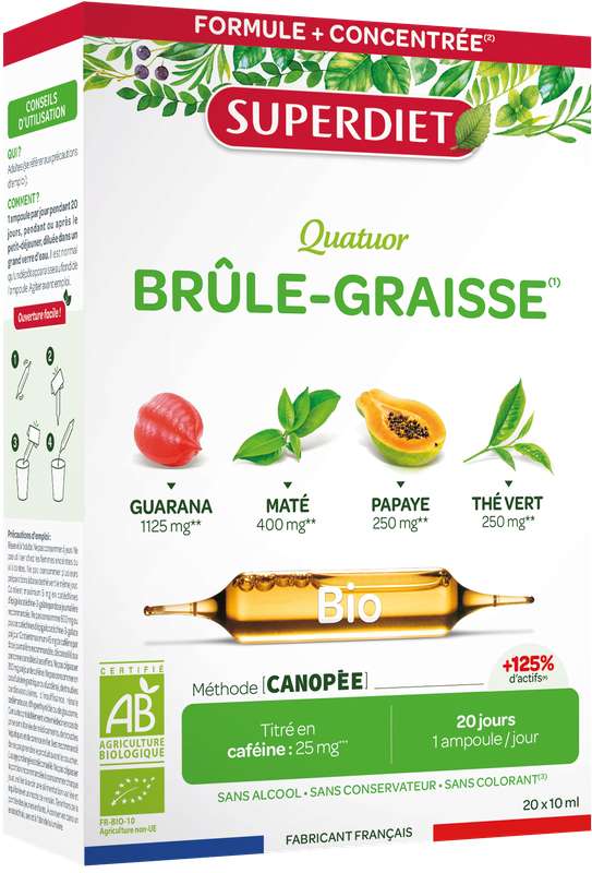 Découvrez la nouvelle formule du Quatuor Brûle-Graisse Superdiet, plus concentrée* et super dosée en plantes :