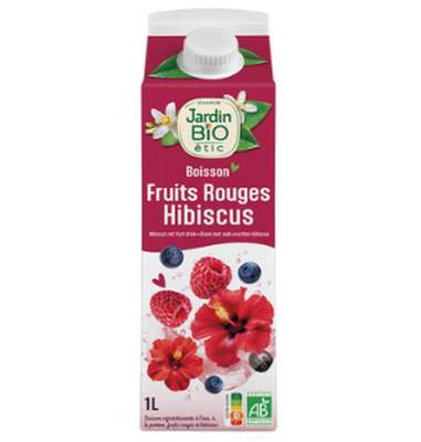 RETROUVEZ TOUTE NOTRE EXPERTISE DES FRUITS ET DES PLANTES DANS NOS SAVOUREUSES BOISSONS AUX RECETTES ORIGINALES ET RAFRAICHISSANTES POUR UN MAXIMUM DE GOURMANDISE ! Découvrez l'association originale des fruits rouges et de l'hibiscus dans cette boisson délicieusement fruitée, alliant des saveurs douces et acidulées, qui raviront les papilles de toute la famille ! Un savoir-faire français & historique : sélection et assemblage des meilleurs jus de fruits et plantes Sans conservateurs Sans colorants Sans arômes artificiels Fruits & plantes bio Conditionné en France 1% pour la planète Emballage recyclable Produit Bio 1L