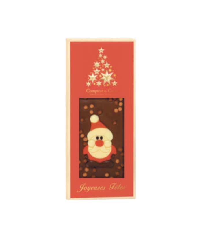 Chocolat lait pur beurre de cacao: 36% minimum de cacao. Sucre, beurre de cacao, lait entier en poudre, pâte de cacao, noisette, lait maigre en poudre, lait écrémé en poudre, amidon de riz, enrobage sucre (sucre cristallisé origine betterave, sirop de glucose, miel), agent d'enrobage (gomme arabique, cire d'abeille, cire de carnauba, shellac), émulsifiant (lécithine de soja), concentrés (carotte, spiruline, radis, pomme, cassis, patate douce, extrait de betterave), arôme naturel de vanille, vanilline, sel, colorants alimentaires du décors: E133 (bleu brillant FCF).