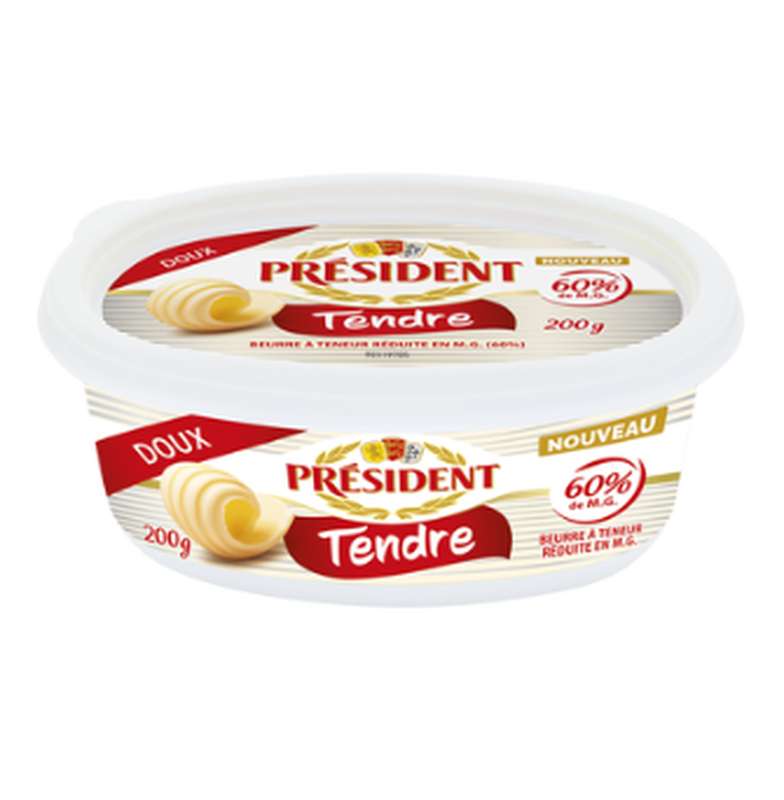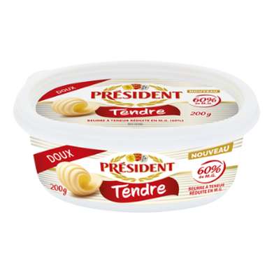 Beurre tendre doux à tartiner 60% mg, Président (200 g)