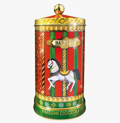 Depuis 1858, la maison Baratti & Milano fait rayonner l’élégance turinoise à travers ses créations chocolatées. Dans ce coffret en métal en forme de carrousel et qui fait de la musique, on découvre un assortiment raffiné qui séduit autant les enfants émerveillés que les adultes gourmets. Un cadeau aussi beau que délicieux.
