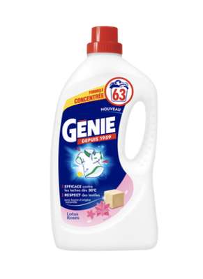 Découvrez notre nouvelle lessive GENIE Lotus Roses, spécialement conçue pour répondre à tous vos besoins de lavage. Son efficacité dès 30°C permet de faire des économies d'énergie tout en garantissant des résultats impeccables. Sa formule respecte parfaitement les fibres textiles et les couleurs de vos vêtements préférés. De plus, son parfum longue durée diffuse une agréable odeur qui dure jusqu'à 72 heures, vous enveloppant dans une douceur florale. Fabriquée à partir de savon d'origine naturelle, dans une bouteille à base de 50% de plastique recyclé et 100% recyclable, la lessive GENIE est votre allié pour des vêtements propre au quotidien !