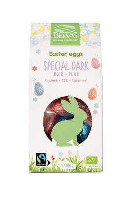 Oeufs de Pâques végan - noir plein 72%, praliné et lait de riz praliné, Belvas (100 g)