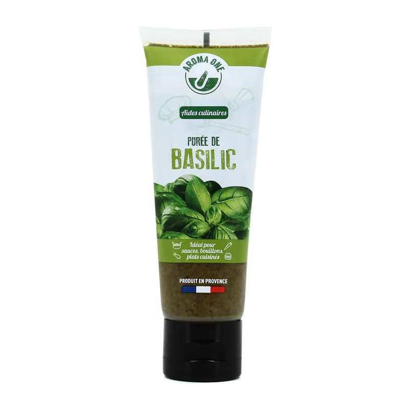 Basilic 68%, huile de tournesol, sel, huile d'olive vierge, jus de citron concentré, gomme de guar